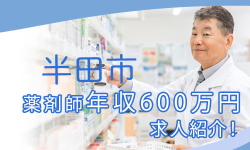 「薬剤師の転職.com」が愛知県半田市の薬剤師求人で年収600万円を期待できる案件を紹介します。