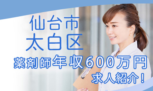 「薬剤師の転職.com」が宮城県仙台市太白区の薬剤師求人で年収600万円を期待できる案件を紹介します。